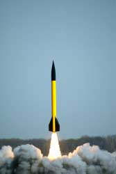 In High Power Rocketry, the codes vary slightly from one manufacturer to the next. Sometimes they have a letter or description indicating a propellant type that gives off different colors or type of smoke. Yes, in high power you can choose color too. Delay Time The rocket is traveling very fast at the moment the motor quits burning. The timed delay allows the rocket to coast to its maximum altitude and slow down before the parachute is ejected by the ejection charge. The ideal delay time for a rocket and a given motor can be calculated. Better yet, you can use RockSim software by Apogee Components Inc. to predict both the altitude and coast time very accurately. Rocketry Online also has a great information page for computing recovery needs on www.info-central.org/index.cgi?recovery. Model rocket motors marked with a time delay of 0 (e.g., "C6-0") are booster engines for two stage rockets and are designed to ignite the next stage engine immediately once their own thrust is finished. In a multi-stage rocket, you would usually select a very long delay for your topmost engine. Reloadable Rocket Motors Propellant for high power rocket motors is usually a solid fuel mixture of ammonium perchlorate called APCP. There are also Hybrid motors that use a cored paper or plastic element and Nitrous oxide that when in combination are ignited in a combustion chamber, ie, motor, produces thrust. However, I'm going to speak of APCP motors first. APCP is a mixture of ammonium perchlorate and a few other elements. In its raw cast form as a cylinder of solid propellant, it can be ignited and it will burn, but not fast enough to create any kind of thrust. As APCP is pressure sensitive, this propellant burns much faster once you contain it in a combustion chamber (motor case) and you carefully calculate the nozzle exit throat to produce just the right amount of pressure to create a fast but controlled burn, resulting in that all important thrust. As the pressure builds inside the combustion chamber, the hot gases exit the nozzle throat, expanding into the nozzle exit cone and continues to accelerate (depending on the design of the nozzle), resulting in an even more efficient use of the stored kinetic energy of the propellant. There are single use motors and reloadable motors. The single use motors are common up to “G” power. After that, most motors are reloadable. High power motors begin at “H” power so most High Power rockets use reloadable motors. What’s a reloadable motor? Reloadable motors have separate hardware and propellant that you assemble yourself. The motor case and the two ends are reusable. You purchase the motor hardware and reload it over and over. Rocketeers messed up when it came to the description of the “motor casing hardware.” They use the term “motor” interchangeably and it confuses people. Just so you know. Anyway, you buy the propellant and the disposable internal parts as a “motor,” but actually it’s a kit. Nowadays there are lots of motor manufacturers and each sells hardware that works only for their motors. One company has a system in which the propellant and inner section comes pre-assembled and all you do is screw it into the case. However, the average motor kit usually contains: