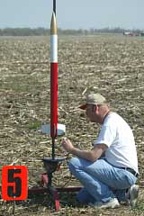 Once the rocket is ready on the launch pad an electrical igniter (two wires with a head made of a easily ignited type-of propellant mixed with magnesium or titanium) is installed all the way up until the head of the igniter stops at the head of the motor. The igniter wire is then hooked up to a solenoid switch that acts as the igniter’s link to a nearby car battery. The solenoid is wired to a launch control box where each pad can be independently selected and activated by the Launch Control Officer (LCO) at the range head. Once energized, ignition in Model Rockets takes only a fraction of a second but High Power Rockets can take a full second or two to "come to pressure" before launching off the pad. As Ammonium Perchlorate Composite Propellant is a difficult material to ignite, some igniters burn out without igniting the rocket motor; rockets that fail to light are often greeted with a chorus of "No Joy" from rocketeers on the flight line. The Rocket Motors Rocket motors come in many sizes. They are measured in "total impulse" and are designated by letters of the alphabet. Each letter designates a range of total impulse and each motor size contains twice the total impulse of the previous letter. For example a "B" motor has a potential total impulse twice that of the total impulse of an "A" motor; a "C" motor has twice the potential total impulse of a "B" motor, etc. Rocket motors larger than "G" are considered High Power; use of them requires certification by Tripoli and/or NAR.