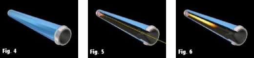 Figure 4: The completed motor ready to install into the rocket. Figure 5: Once the motor is installed into the rocket and the rocket is on the pad, the electric igniter fires to begin the launch. The igniter is covered with a more easily ignited sort of propellant mixed with magnesium or titanium to start the motor burning good. It only takes a fraction of a second in smaller motors but may take a second or two on big motors. Figure 6: The propellant grains ignite and the motor begins to pressurize. Thrust builds very quickly at this point.